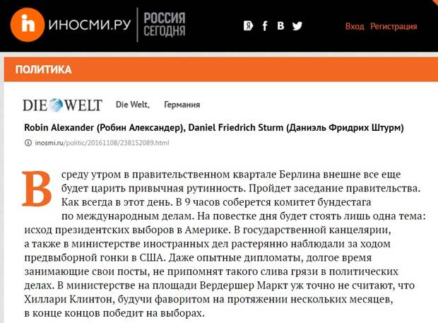 Но его надо было оформить как-то литературно-журналистски рассуждениями и ссылками на аргументы и факты. И получился гибрид, который в переводе на русский и предоставили нам ИноСМИ.