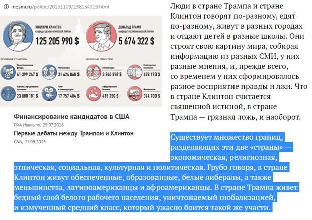 Просто разберёмся. Поскольку на сайте ИноСМИ.ru уже опубликованы переводы, можно приступать.Авторы SZ пишут (на первый взгляд) о расколе в американском обществе. Заканчивается статья озарением: