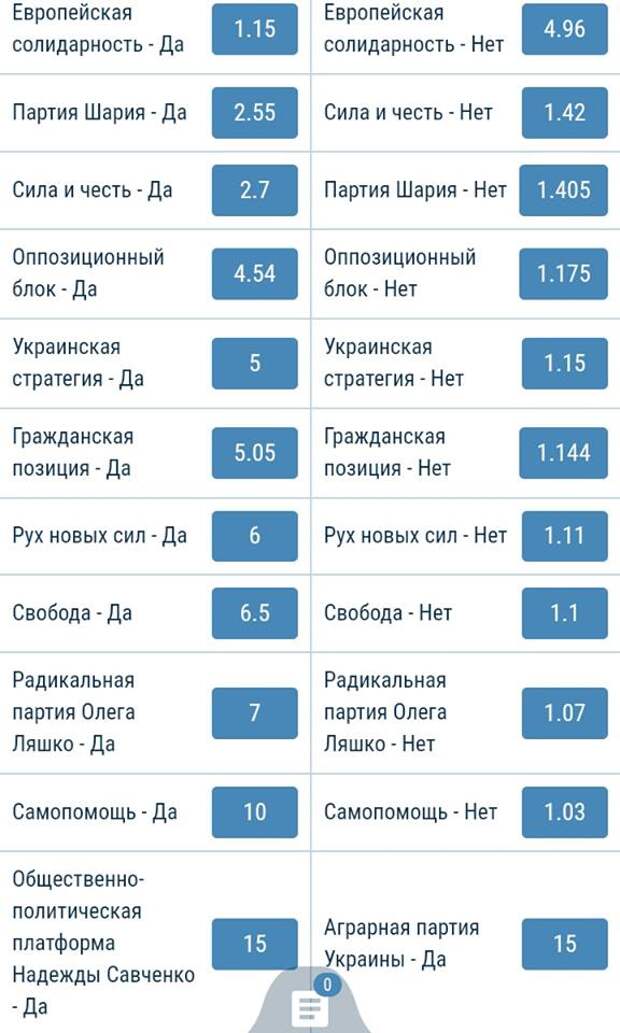 Вот настоящая социология и они видят явно не 2,7% внезапно прыгнувший с 0,9% а там гораздо больше 2,7% это четко видят и знают букмекеры. Речь о набирании 5% барьера, пройдёт или нет партия в Раду.