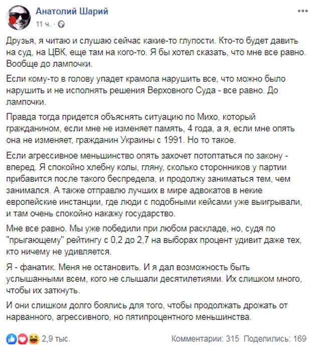 Но даже в случае снятия с выборов лично самого Шария, это не помешает участвовать в выборах его партии.