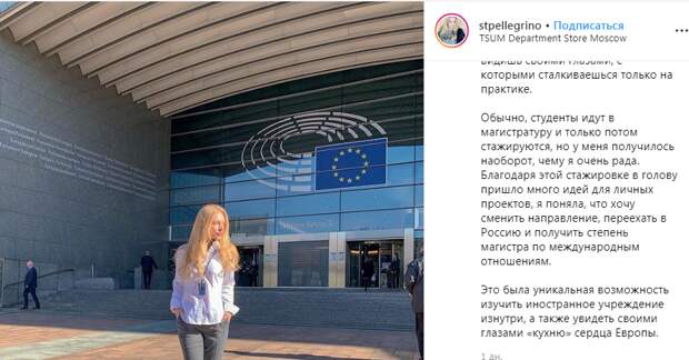 Стажировка в Европарламенте закончилась. Елизавета приняла решение вернуться в Россию, чтобы реализовать приобретенный опыт.