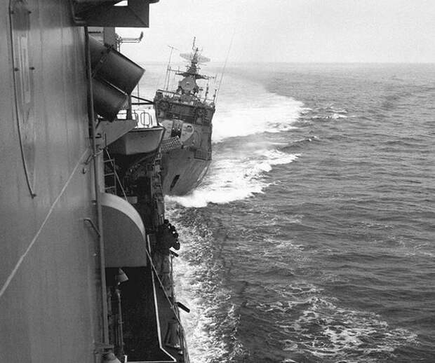 Корабли некоторое время шли борт о борт и вдруг с советского корабля послышалась надсадная команда: «накат!»