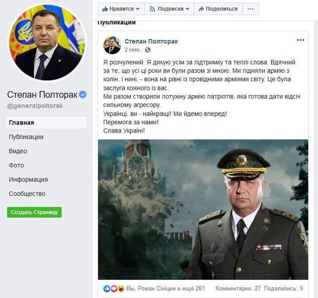 Видимо ему кто-то нашептал, как глупо он выглядит и сей чудесный образ фейсбук-триумфатора был нещадно выпилен https://www.facebook.com/gener.... Утверждения о том, что ВСУ находятся на уровне лучших армий мира остались. В мире фейсбук-аккаунтов безусловно.